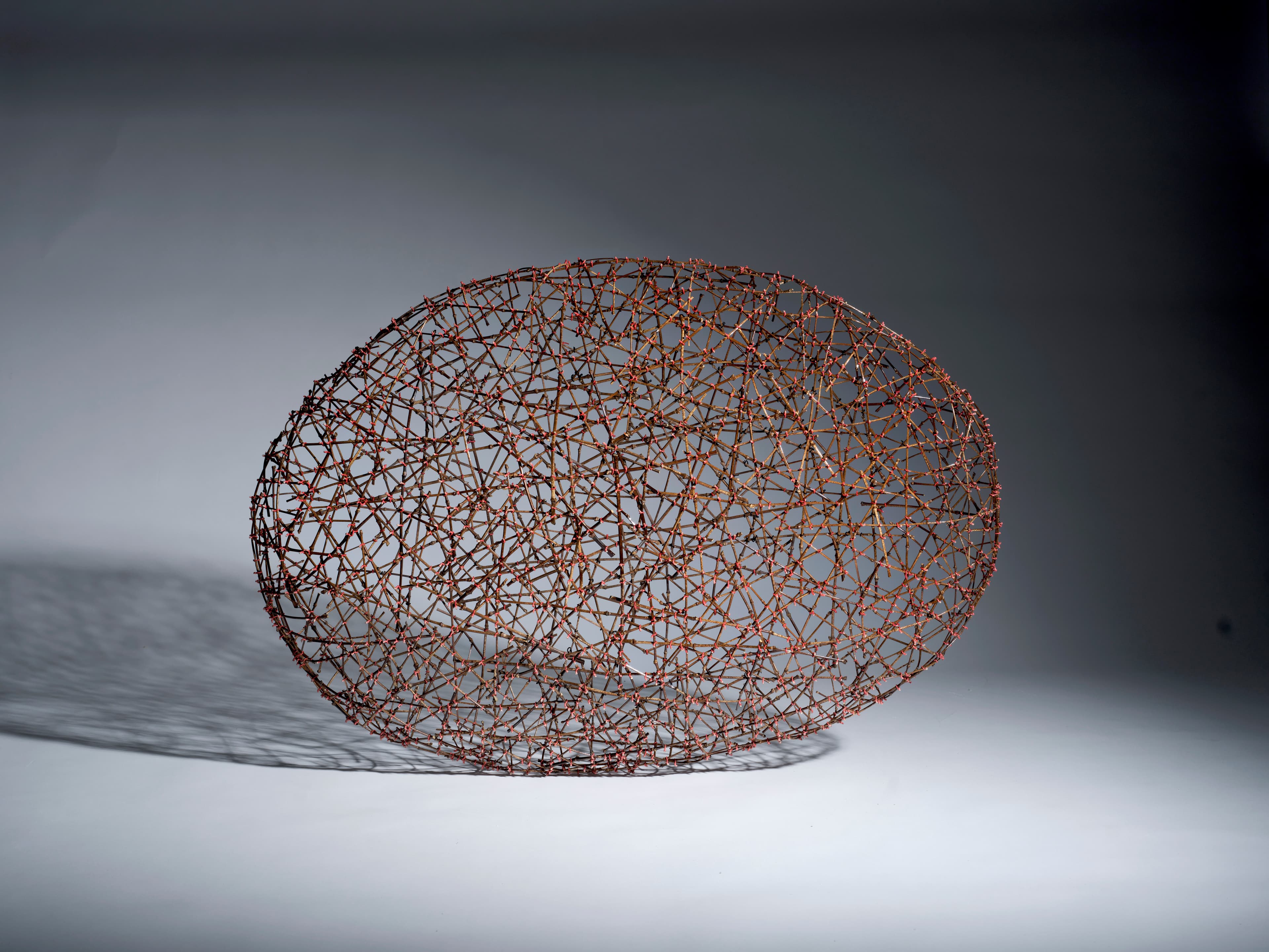 Lee Sungkuen translates mathematical concepts and abstraction into sculptural language, visualizing topological explorations through cocoon-like structures. His sculptures, woven from steel lines, symbolize a world where countless human figures join hands, representing life, nature, and the order of the universe. Each connection between lines is not merely a mechanical joint but a representation of humanity itself, reflecting his exploration of the intrinsic relationship between humans and nature. Through his work, Lee conveys that we are part of nature and can overcome crises through solidarity and harmony. His exhibition, The Cycle of Life, highlights this message, illuminating the interconnectedness of humanity and life.